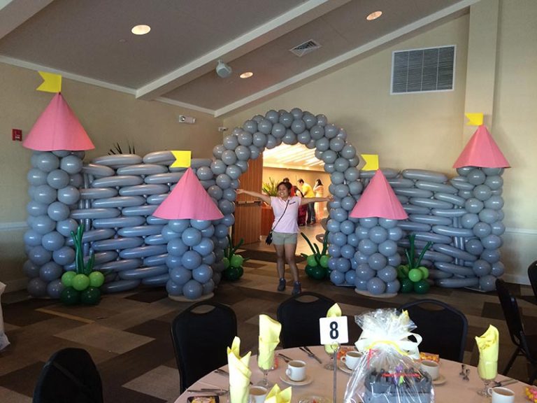 Balloon decorations are made with a combination of twisting and stacking techniques showcasing amazing creativity. They are typically used for decorating birthday parties, graduations, school events, corporate functions, and for other festive gatherings like weddings. “Stackers” are balloon artists who use round balloons to build all sorts of structures like arches or balloon trees. “Twisters” are those who use pencil balloons to put together fun things like balloon animals. We at Balloons ‘n’ Beyond Las Vegas are known for decor such as balloon columns/trees, table centerpieces, balloon drops, sculptures, and balloon bouquets. You should see the balloon castle we can put together!